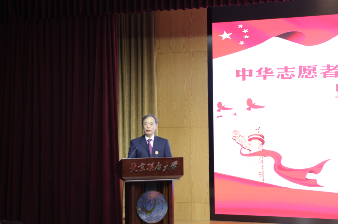 宋志强会长发表了讲话,他向莅临现场的各位同志表示热烈欢迎,向一贯关心支持志愿服务事业的各界同仁表示崇高敬意!对为举办这次活动提供便利条件的北京联合大学表示衷心感谢。他指出,志愿服务是一种催人向上向善的力量,是广大志愿者奉献爱心的重要渠道。志愿服务事业要同“两个一百年”奋斗目标,要同建设社会主义现代化国家同行;他强调成立国防教育志愿服务总队,是志愿服务领域的又一次重要拓展和延伸,而加强国防教育既是弘扬和培育爱国主义精神、筑牢国民“精神长城”的重要方式,更是建设和巩固国防基础、增强民族凝聚力向心力战斗力的重要途径;他号召国防教育志愿服务总队的全体同志及全体志愿者们要不忘初心、牢记宗旨、扎实工作、勇于创新、不负众望,为推动我国国防教育事业的发展做出应有的贡献。
