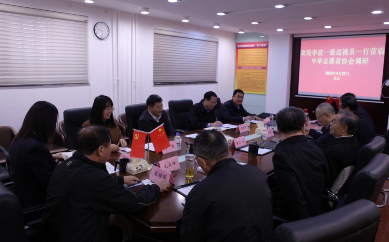 2023年4月27日上午,民政部慈善事业促进和社会工作司一级巡视员李波率调研组到中华志愿者协会,就协会建设与志愿服务工作情况进行调研座谈。宋志强会长主持了座谈会,副会长姚立新、张旭光、曹健,会长助理毛戎峰等同志参加了本次活动,协会专职副秘书长刘红尘汇报了协会建设基本情况、存在困难、工作举措及对上级职能部门的工作建议。