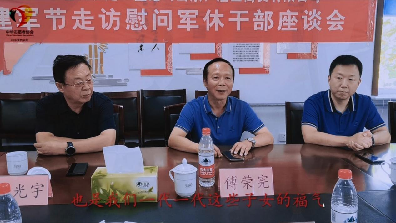 中华志愿者协会山东省代表处常务副主任傅荣宪,也在讲话中感慨万千,他感叹今天的幸福生活啊,是老首长们及烈士先辈们用血用命换来的,作为晚辈他祝愿老首长们幸福安康,并表示,老首长们的健康长寿,才是我们这一代一代子女的福气。