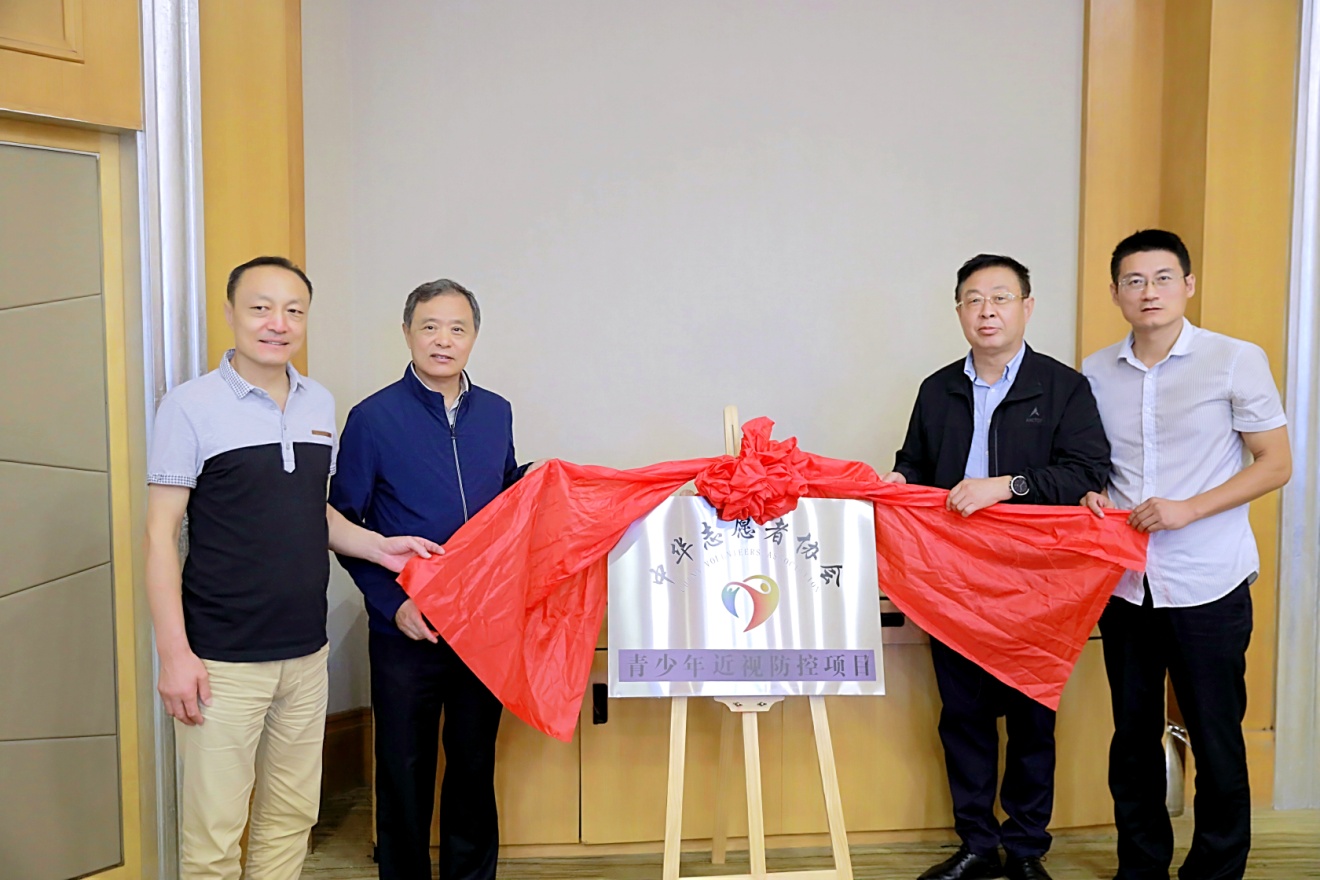 △会长宋志强和山东省代表处主任张光宇为“中华志愿者协会青少年近视防控项目”揭牌