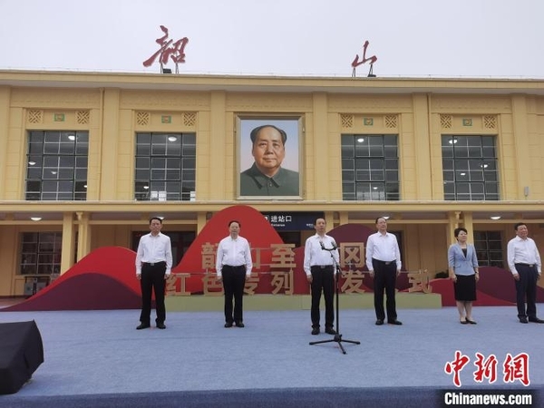 中新网长沙6月18日电(向一鹏)18日8时整,首趟韶山至井冈山红色专列从韶山火车站开出。湖南省委书记、省人大常委会主任许达哲宣布发车,湖南省委副书记、省长毛伟明致辞。